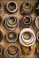 Plastic pre glued edge banding tape for furniture decor and repair. Object is hanging on a wall in a workshop