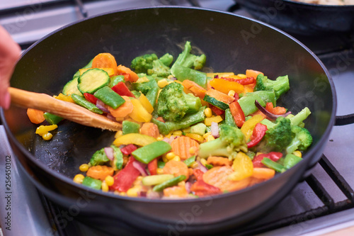 A mixture of frozen different vegetables