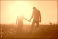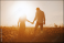 silhouettes of a couple holding hands looking at the bright sunset in a wheat field.