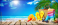 Tropical beach with sunbathing accessories, summer holiday background