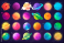 Vector set of cartoon planets. Colorful set of isolated objects. Space background. Fantasy planets. EPS 10
