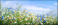 >Plakat>Beautiful field meadow flowers chamomile, blue wild peas in morning against blue sky with clouds, nature landscape, close-up macro. Wide format, copy space. Delightful pastoral airy artistic image.