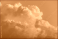 Close up view of beautiful colored dramatic cumulus fluffy clouds on blue sky at sunset background