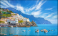 Fototapeta - Beautiful Amalfi on hills leading down to coast, comfortable beaches and azure sea on Amalfi Coast in Campania, Italy