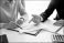 wealth management concept, business man and team analyzing financial statement for planning financial customer case in office.
