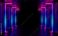 Multicolored neon lamps in a dark tunnel. Reflections on the walls.