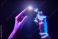Touching fingers of engineer and digital technology that he creates. Acquaintance of man and technology.
