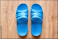 Fototapeta - niebieskie klapki (sandały) na podłodze