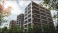 Modern apartment buildings exteriors, in sunny day, green area, park