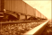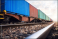Train wagons carrying cargo containers for shipping companies. Distribution and freight transportation using railroads.