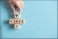 Health Insurance Concept, Hand of woman arranging wood cube stacking with icon healthcare medical on blue background, copy space.