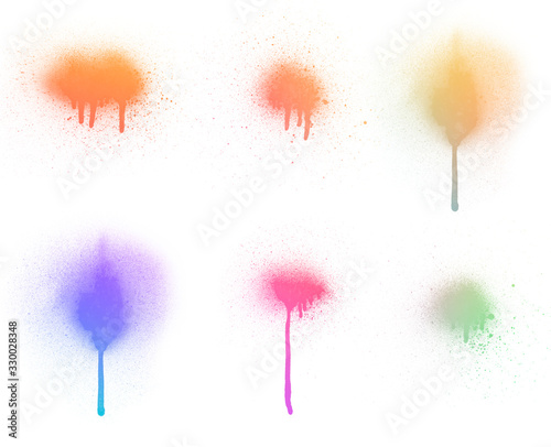 Set of 6 colorful paint spray and stains isolated on white background