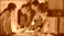 >Plakat>Engineers Meeting in Technology Research Laboratory: Engineers Scientists and Developers Gathered Around Illuminated Conference Table, Talking and Finding Solution, Inspecting Industrial Engine Design