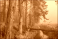 Fototapeta - Skraj lasu we mgle z rowem melioracyjnym