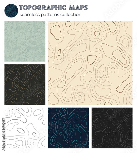 Topographic maps. Awesome isoline patterns, seamless design. Appealing tileable background. Vector illustration.