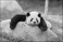 Adorable giant panda bear sleeping on rock