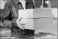 Fototapeta - Courier in a face mask with a box in his hands. Portrait from the waist up. Delivery man concept.. Outdoor.