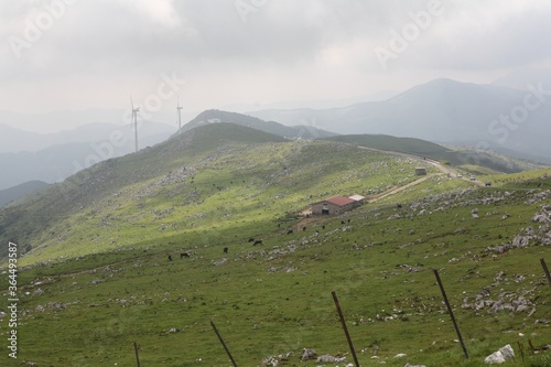 Fototapeta - 風景, 山, 自然, 山, 空, 緑, サマータイム, 草, ヒル, ヒル, 全景, 雲, 牧草地, 雲, 野原, 木, 低地, 青, いなか, 野原, ルーラル, 国, 景色, 森, 美しさ