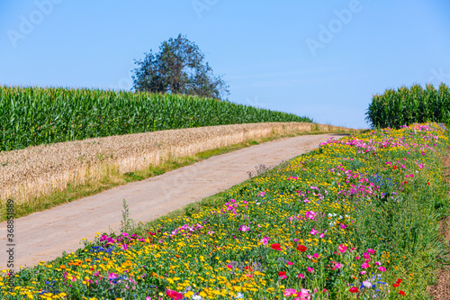 Fototapeta - Blumenwiese für Insekten am Wegrand