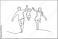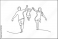 >Plakat>Happy family in continuous line art drawing style. Front view of parents with their little kid holding hands and walking together black linear sketch isolated on white background. Vector illustration