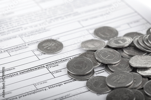 Fototapeta - Dokumenty firmowe i pieniądze. Rachunkowość i biznes