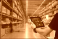 Smart warehouse management system.Worker hands holding tablet on blurred warehouse as background