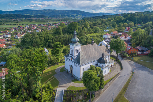 Fototapeta - Nowy Sącz, Podegrodzie kościół z drona