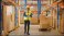 >Plakat>Handsome Male Worker Wearing Hard Hat Holding Digital Tablet Computer Walking Through Retail Warehouse full of Shelves with Goods. Working in Logistics and Distribution Center.