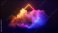 3d render, abstract minimal background with pink blue yellow neon light square frame with copy space, illuminated stormy clouds, glowing geometric shape
