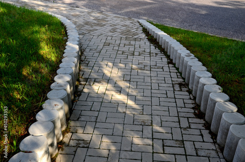Fototapeta - Palisade made of concrete of various shapes and profiles is widely used especially in garden architecture in solving smaller height differences, for edging raised flower beds, ornamental grassy areas.