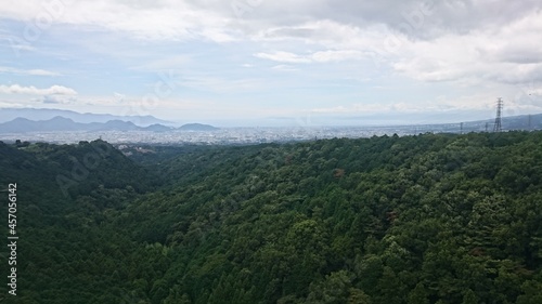 Fototapeta - 山, 風景, 空, 自然, 山, 森, 雲, 雲, 全景, 景色, 木, 当惑, ヒル, 緑, 木, 旅行, 低地, サマータイム, 景色, 海, 太陽, 水, 湖, ヒル, 公園