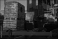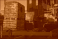 >Plakat>Duża budowa obszernego budynku , widoczne wnętrze ze stalowymi podporami stropu , oraz zewnętrzny skład worków z cementem i innych budowlanych utensyliów .