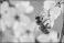 Fototapeta - Bee pollinating apple blossoms. A bee collecting pollen and nectar from a apple tree flower. Macro shot with selective focus