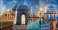 Humayun's Tomb, India Gate, Taj Mahal and Amber Fort pavilion, most famous places of India in collage