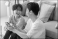 Fototapeta - 部屋でくつろぎながら携帯を見る仲良し若い日本人カップル・夫婦