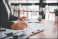 >Plakat>Portrait of a woman working on a tablet computer in a modern office. Make an account analysis report. real estate investment information financial and tax system concepts