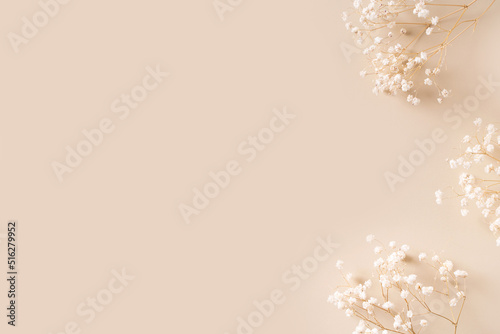 Fototapeta - Dry natural grass, leaves and flowers beauty and fashion concept mock up