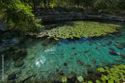 Fototapeta - Dzibilchaltun, Mexico, :Cenote Xlacah situated in Dzibilchaltun zona archeologica area in Mexico
