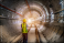 Fototapeta - Soft focus and blurred lighting background of focus at engineer or technician control. Underground tunnel infrastructure. Transport pipeline by Tunnel Boring Machine for electric train subway