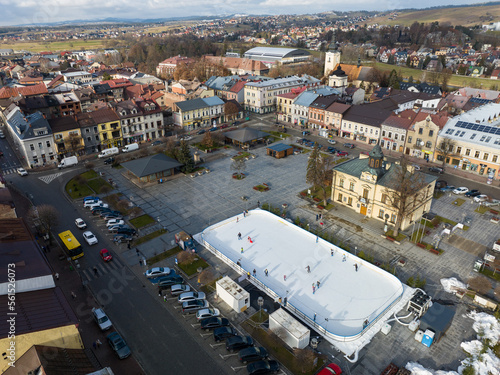Fototapeta - Aerial view of the center of the city of Nowy Targ in Poland