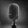 Vintage style microphone over blue and red bokeh background. Generative AI