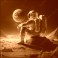 The Man on the Moon. Space Expedition. Rocket flight into space. Generative AI.