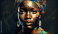 Abstract painting concept. Colorful art portrait of a black woman with modern turban. African culture. Generative AI.