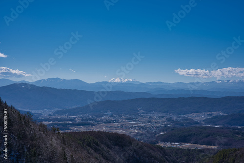 Fototapeta - 山, 風景, 空, 自然, 山, 雪, 雲, 景色, 冬, 全景, 日の出, 太陽, ヒル, 頂点, 低地, モーニング, かすみ, 旅行, 寒い, 青, 光景