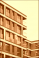 Fototapeta - Nowoczesny budynek wielorodzinny w centrum miasta. Duża ilość kondygnacji. Balkony i loggie. Słoneczna pogoda