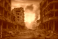 Fototapeta - 戦争で爆撃を受けた街 火災と倒壊した建物やビル