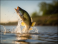 Fototapeta - Fishing trophy - big freshwater perch in water on green background.