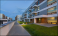 Fototapeta - Nowoczesny budynek wielorodzinny w europejskim mieście nocną pora przy sztucznym świetle. Niebieska godzina