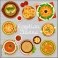 Fototapeta - Egyptian cuisine meals menu page cover. Kawareh bi, Ab Ghooshte Fasl and Marka soups, Bissara pureed broad beans, Harira Ramadan and Balik corbasi fish soup, Kesra sesame bread, Zaalouk eggplant salad