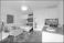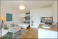 >Plakat>General view of a stylish modern studio apartment. There is a small kitchen with a wooden counter, a double bed and a single bed, and a table with chairs